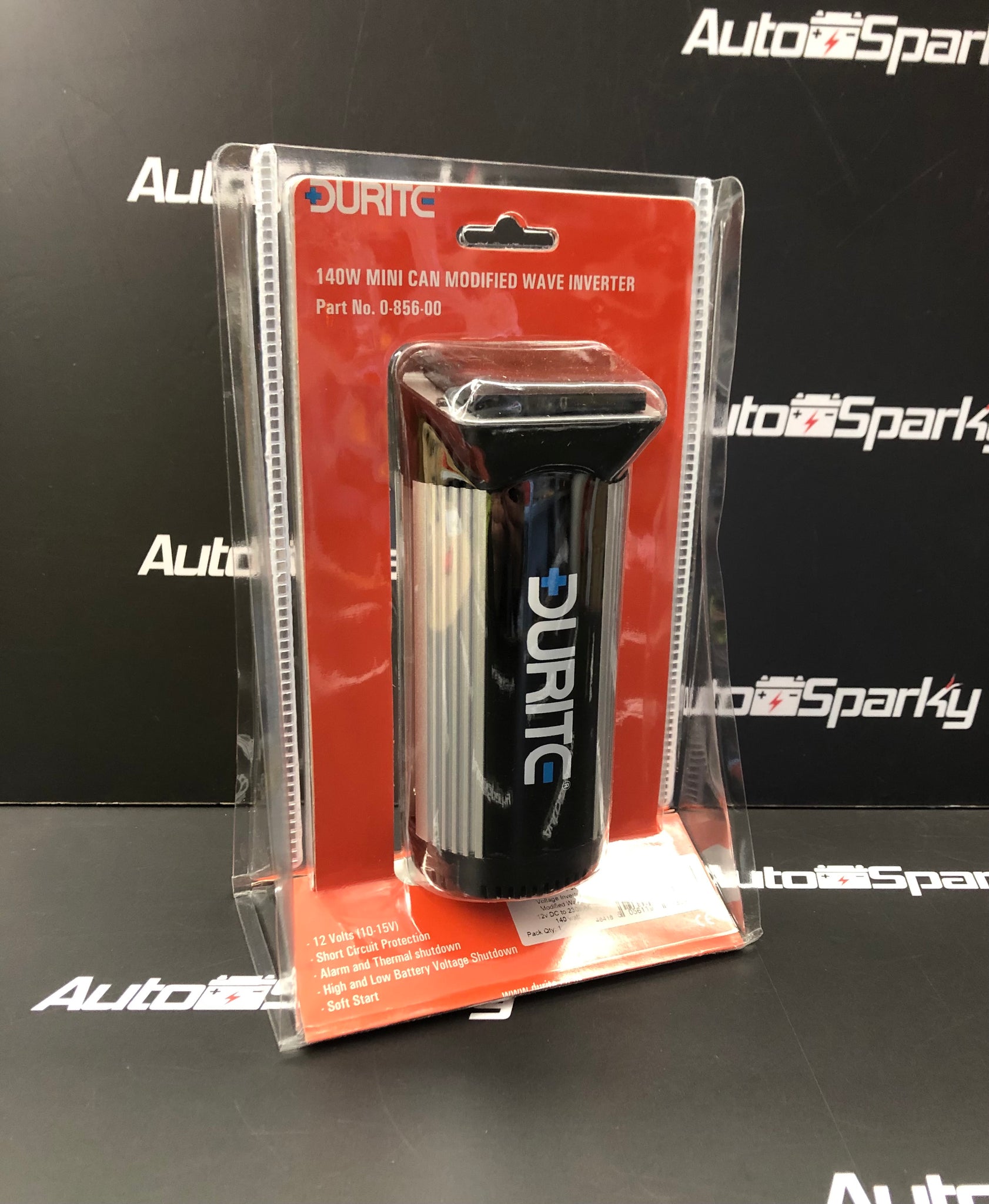 Durite 140W mini can modified sine wave inverter. Protected against overload, over temperature, low battery and short circuit. It is supplied with one standard UK three pin socket outlet, on/off switch, USB port rated at 1A and a cigarette plug with 80cm of cable. Battery polarity protection by fuse. Short circuit protection. Soft start. The Durite 140W inverter can be used for fairy lights, laptop, small power tools.
