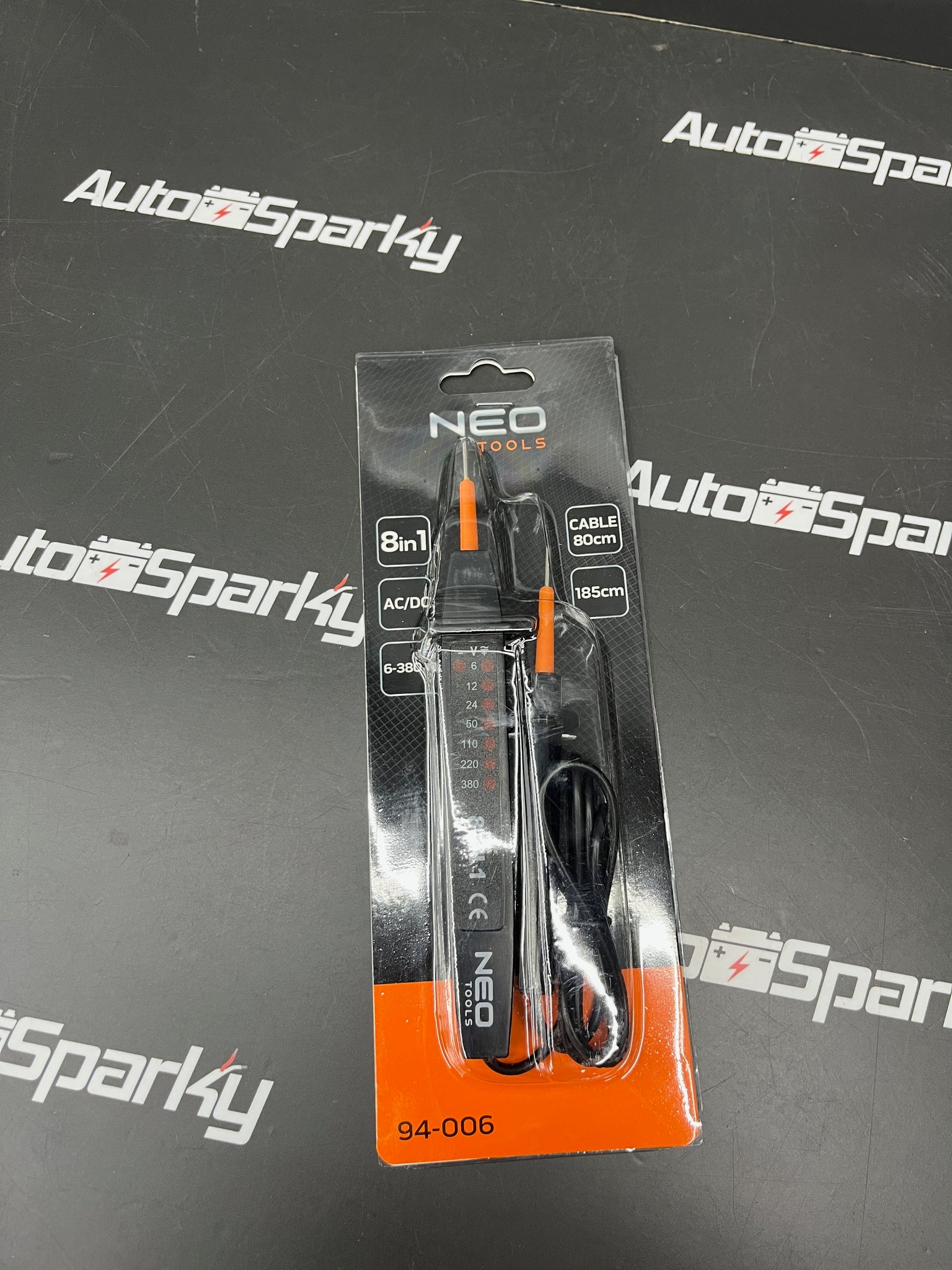 The 8-in-1 AC/DC 6-380 V 94-006 NEO Multifunctional Voltage Tester is an indispensable multitasking tool for the electrician and mechanic professions, allowing you to check the zero in the electrical harness in cars, as well as the phase in electrical switchgear. It supports DC and AC voltage ranges from 6 to 380 V AC/DC. It comes with two practical probes and an 80 cm long cable.